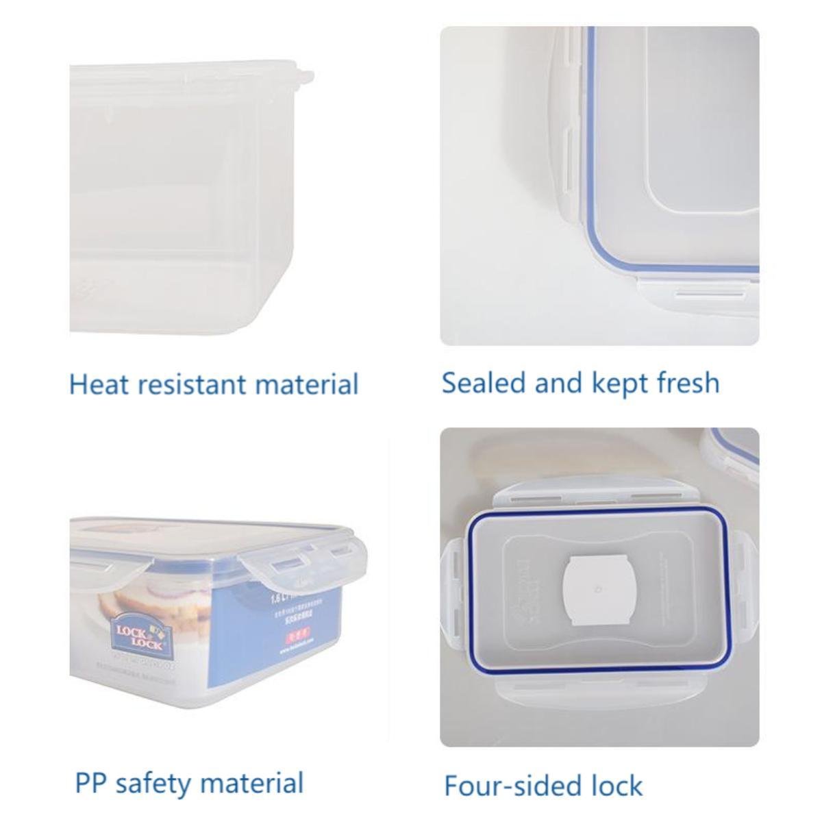 1.Leakproof 4-hinge locking system forms an airtight, watertight seal between container and lid. Never endure spilled food in your lunch bag again.